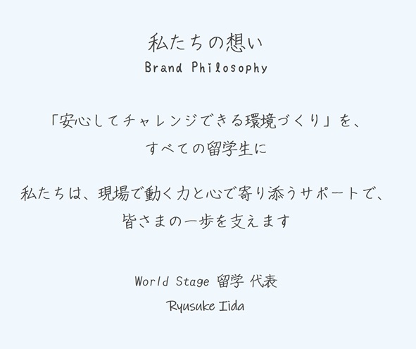 World Stage 留学では、現地在住スタッフに直接相談できる体制を整えています。