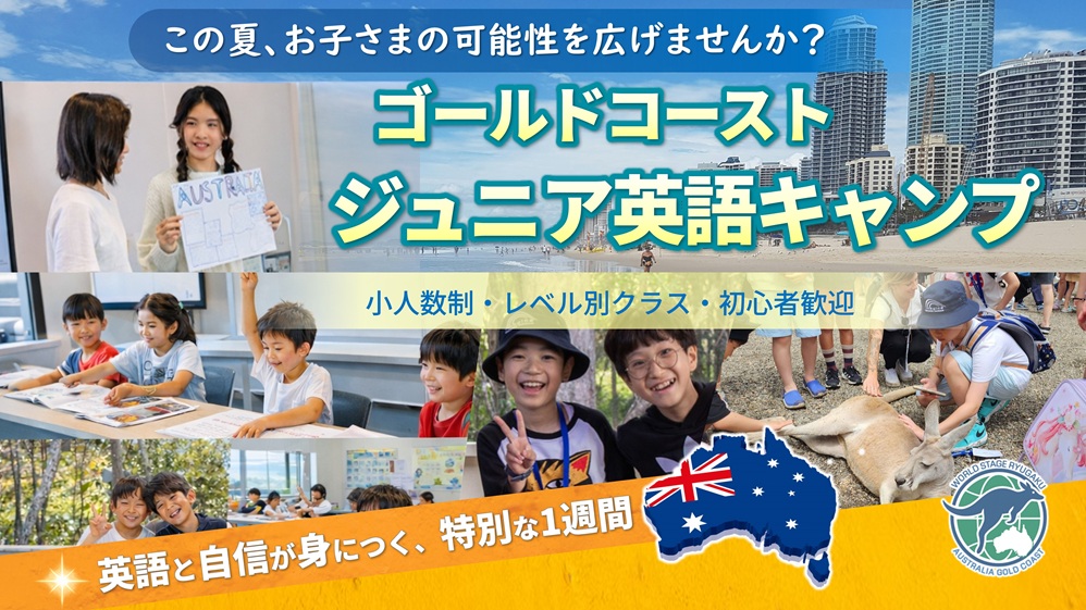 【2026年夏】6〜16歳対象 日本の猛暑から抜け出し、ゴールドコーストへ。 1〜2週間の短期ジュニア留学プログラム。 「暑さで制限される夏」から 「のびのび学べる夏」へ…