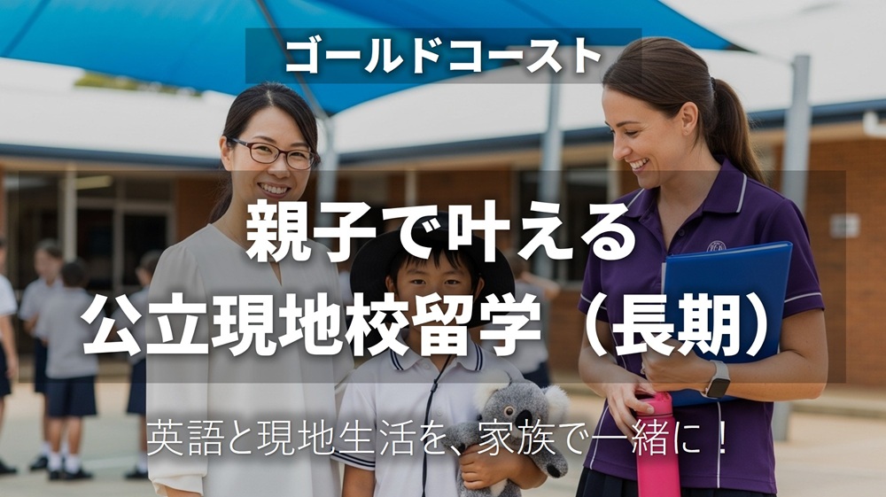 クイーンズランド州教育省が運営する Education Queensland International(EQI) の公立現地校に、親子で滞在しながら通う長期留学プログラム。